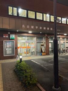 さて、寮の方向に戻ります。平針2番出口の真横には、ゆうちょ銀行があります。