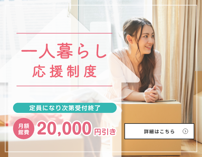 ■月々の館費が2万円減免されます。(1年間で24万円お得!)