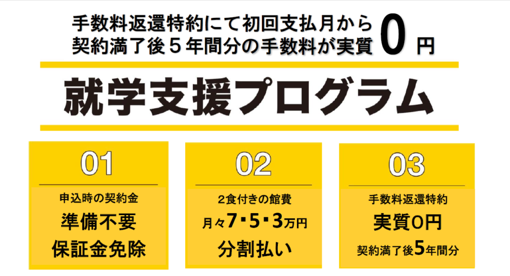 こちらの制度をご利用いただくと、入居期間中月々3万円のお支払いでドーミーをご利用いただくことが可能です。