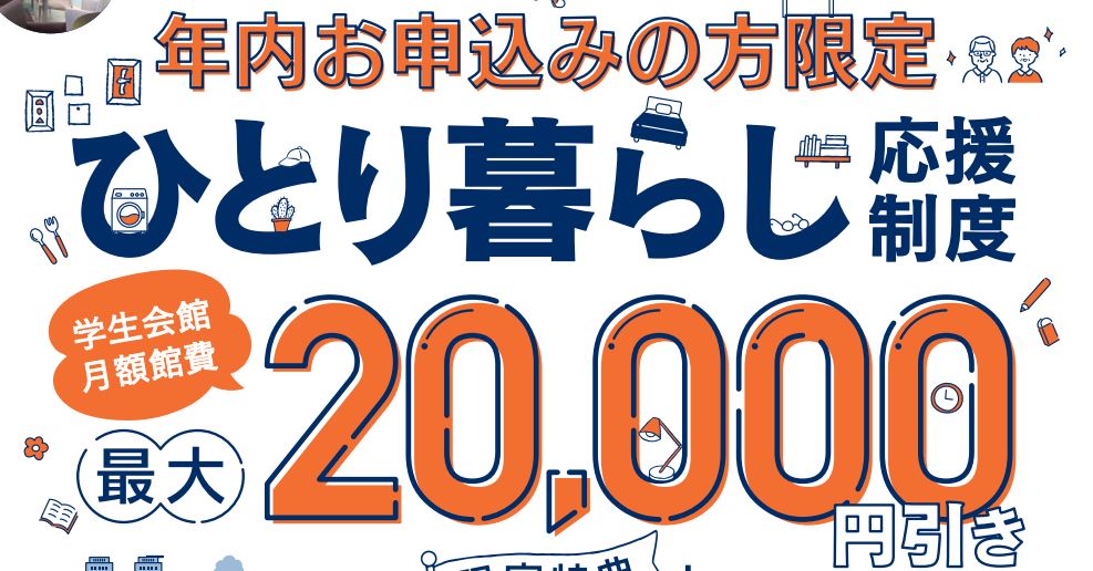 遠方から名古屋へのご進学を応援させていただく趣旨のもと、食事付館費が減免となるひとり暮らし応援制度をご案内させていただきます。