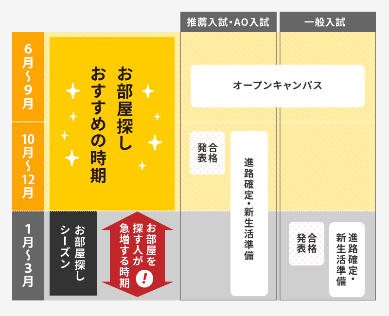 事前にエントリーしておくだけで、ご進学先確定と同時にお部屋を確定させられます。